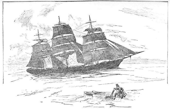 My outfit was procured at a well-known marine establishment in Leadenhall Street. I very well recollect the pride with which I tried on a blue cloth jacket, embellished with brass buttons, and surveyed my appearance in a large pier-glass. I had never before been dressed in brass buttons, and felt, now that I was thus decorated, that I was a man indeed. Also the glittering badge of a sort[10] of wreath of gold, embracing a gorgeous little flag on the cap which the outfitter placed on my head, enchanted me. Indeed, I could not but think that the privilege of wearing so beautiful a decoration would be cheaply earned by years of exposure and hardship, not to mention shipwreck, and even famine and thirst in an open boat.