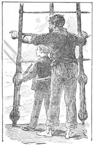 There were several midshipmen on the poop running about. They glanced at me out of the corner of their eyes as they passed. I could not but envy them, for they seemed quite at home, whilst here was I, trembling nervously by the side of my papa, staring up at the masts, and wondering if ever I should be made to creep up those great heights, and if so, what was to become of me when I had reached the top? There was no need, indeed, to glance at my buttons to know that I was a “first voyager.” My wandering eyes and open mouth were assurance as strong as though I had been labelled “greenhorn.” My father, stepping up to one of the midshipmen, asked if the captain was on board.
