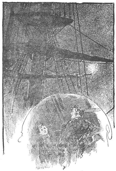 The docks were full of business, and movement and hurry; huge cranes were swiftly swinging out tons’ weight of cargo from the holds of ships to the snorting accompaniment of steam machinery;[13] dockyard labourers were chorussing on the decks of the vessels, or bawling to one another on the quayside; the earth trembled to the passage of heavy waggons; and the ear was distracted by the shrill whistling and roaring puffing of locomotives. There were fellows aloft on the ships, dismantling them of their spars, and rigging, or bending sails, and sending up masts, and crossing-yards, and reeving gear for a fresh voyage.