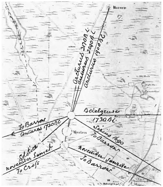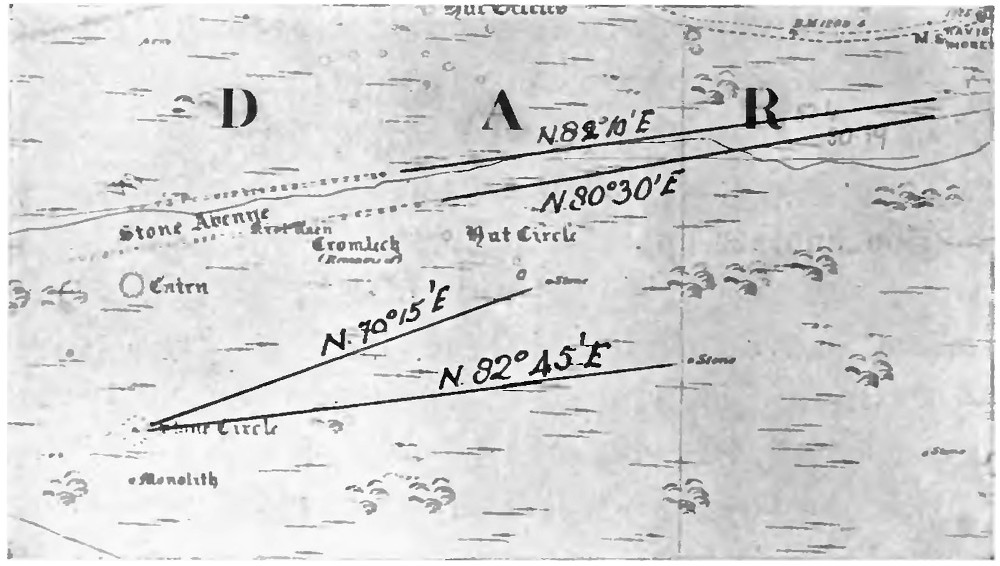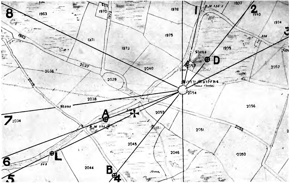 For the azimuths of the sight-lines the investigator of these monuments cannot do better than use the 25-inch, or 6-inch, maps published by the Ordnance Survey. Their accuracy is of a very high order and is not likely to be exceeded, even if approached, by any casual observer having to make his own special arrangements for correct time before he can begin his surveying work.