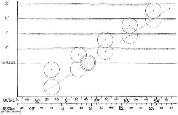 In the observations made at Stonehenge referred to in Chapter VII. I had the inestimable advantage of[vi] the collaboration of the late Mr. Penrose. Our work there would not have been possible without the sympathetic assistance of Sir Edmund Antrobus, Bart.; Colonel Duncan A. Johnston, R.E., Director-General of the Ordnance Survey, also was good enough on several occasions to furnish us with much valuable information which is referred to in its place. Messrs. Howard Payn and Fowler skilfully and zealously helped in the observations and computations. To all these I am glad to take this opportunity of expressing my obligations.