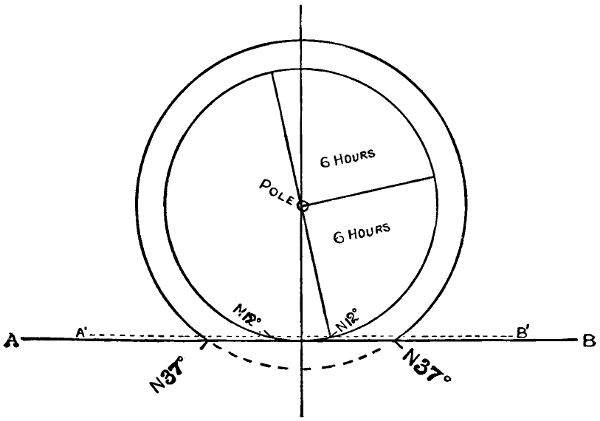 | From this it results that the true azimuth of the Sun at the time of observation | = | N. | 50 | ° | 30 | ′ | 54 | ″ | E. | ||||