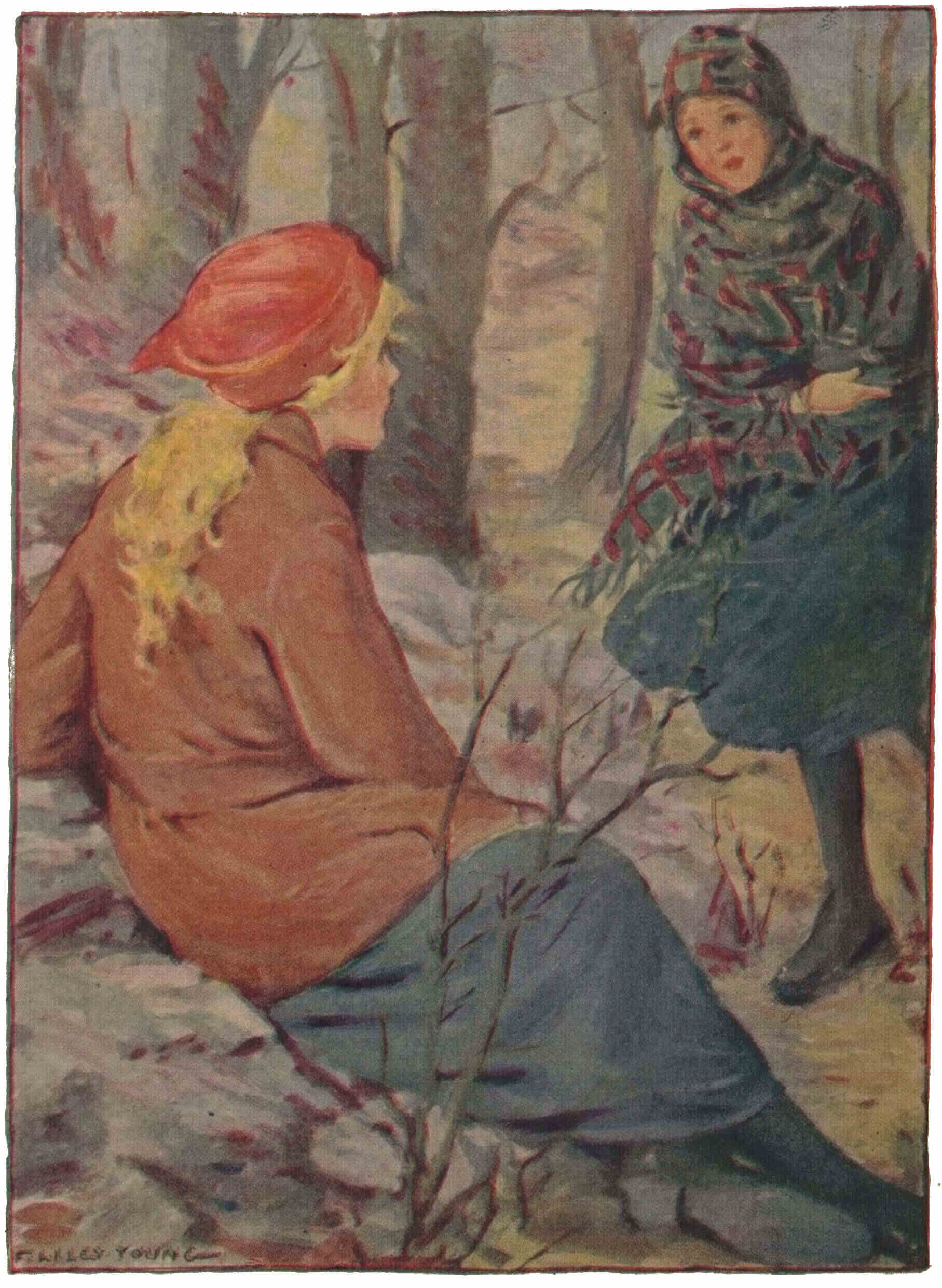 “Tut! Tut! Children!” Carol laughingly admonished. “Climb up in the tree again and be happy little birds until I come out, and then we three will do something ever so interesting.”