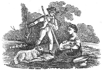 I have a little more to tell you about Susan and her Lamb. Susan’s mother spun its wool every year, and if you had gone to the cottage on a winter evening, you would[15] have seen her busy with her spinning-wheel, while Susan and her brothers were employed in other works, and one of them read aloud the Bible, or some useful book. After the wool was spun, Susan knit stockings for herself and her brothers, which they found very warm and comfortable in the winter. In the course of a few years, the lamb grew up and had several other little lambs, so that in time Susan had a flock of sheep, which were a great help to the family. She was very glad that she had gone to the Sunday school, and had been taught the texts, which made her wish to be kind to the little lamb. I hope my little readers will try to remember all that they read in their Bibles, remembering that the Bible tells us the commands of God, and in keeping his precepts there is great reward.