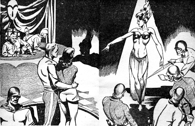 "Faking? You shall see in a few minutes, when I put you to death in the murderous device constructed by your one-time leader, Dr. Townsend!"