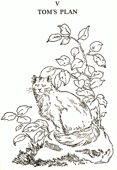 16But just at that moment the last bit of the sun disappeared beneath the edge of the world, and instantly there was a great sound of meowing and spitting, and Tom, the cat, came springing across the lawn, his great yellow eyes flashing, and his back bristling, and every hair upon his tail standing straight out, until it was as big round as your leg. And he flew at Rumpty-Dudget, and jumped upon his hump, and bit and scratched him soundly. At that Rumpty-Dudget screamed with pain, and dropped little Prince Henry, and vanished through the opening of the hedge in the twinkling of an eye.
