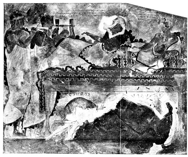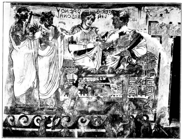 | 28 | Arnth Velchas and wife on couch. Picture in the Tomba dell’ Orco (After a coloured drawing in the Helbig Museum) | 36 |