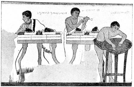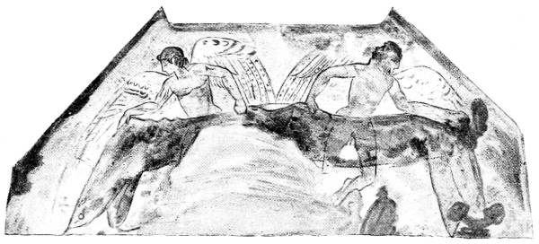 The following sketch is based upon investigations made in the Etruscan Tombs at Corneto and Chiusi, and on comparison of the original wall-paintings with the facsimiles and drawings made from them and preserved in the Helbig Museum in the Ny Carlsberg Glyptotek. It was originally published in Danish, in 1919, as a guide to students in that Department.