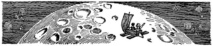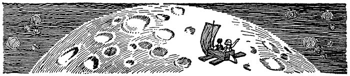 Johnny started the Flying Machine again and steered it toward the Moon. And as they whirled around the side of the Moon the part that resembled a man’s face twisted about until it disappeared.