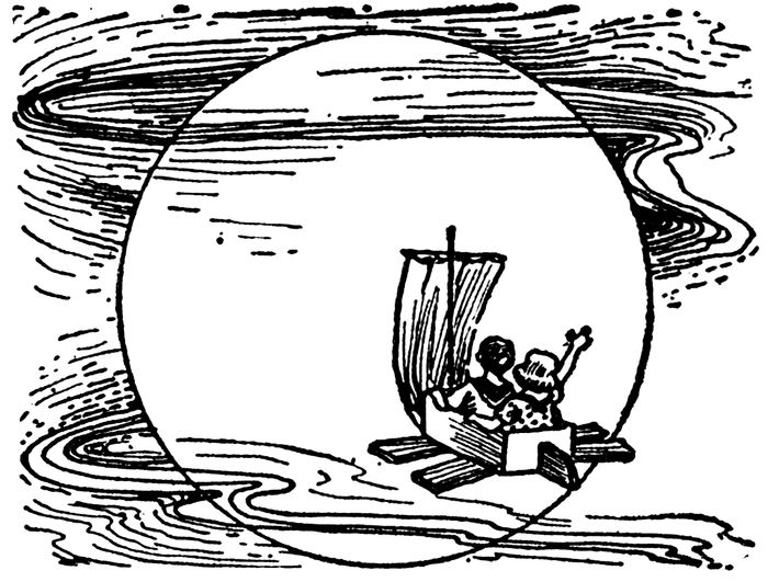 “I’ve put only one nail in the rudder,” Johnny replied, “so that by pulling on these strings we can guide it. See?” And Johnny showed his sister how the board with only one nail in it turned from side to side as he pulled the strings.