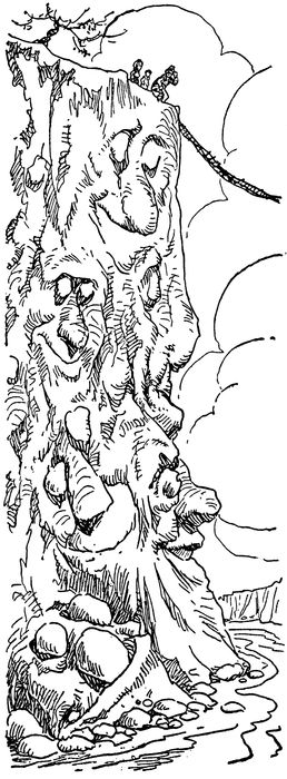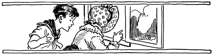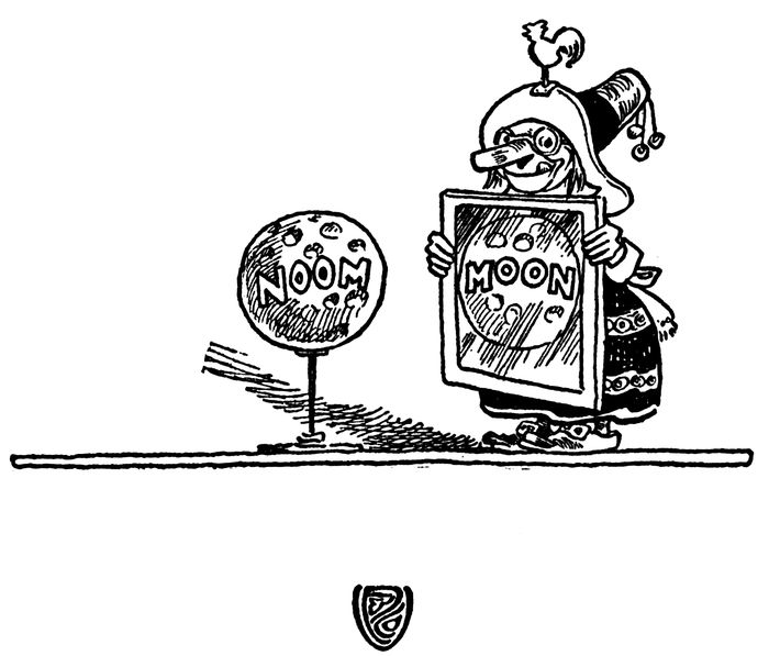 “I believe it is the Moon,” said his sister, “for, you can 21see the face of the Man in the Moon quite plainly. But it is a great deal larger than it usually is, and it doesn’t look quite as it does from the earth. But see! There are the Man’s eyes and nose and mouth.”