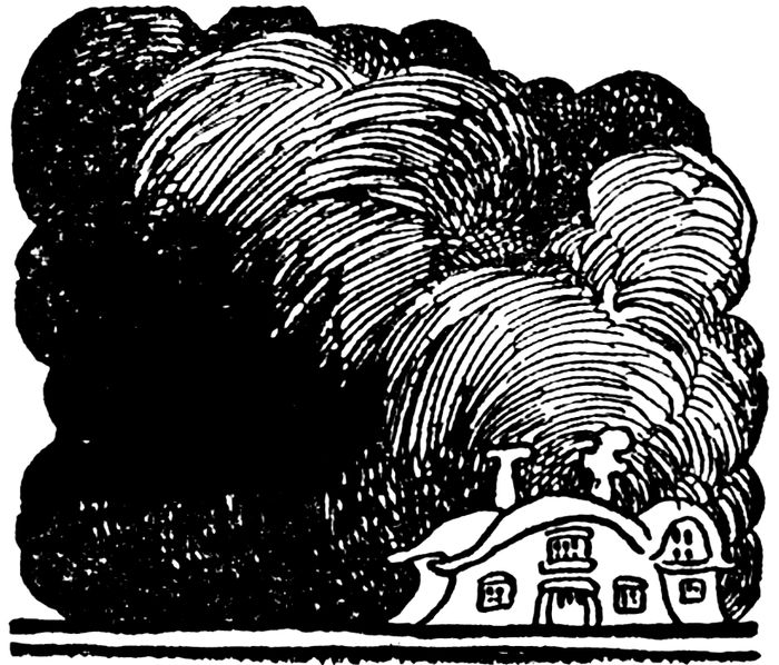 A faint rumble came up to them as of someone rolling potatoes down a wooden trough, and a vivid streak of blue zigzagged through the yellow of the clouds.