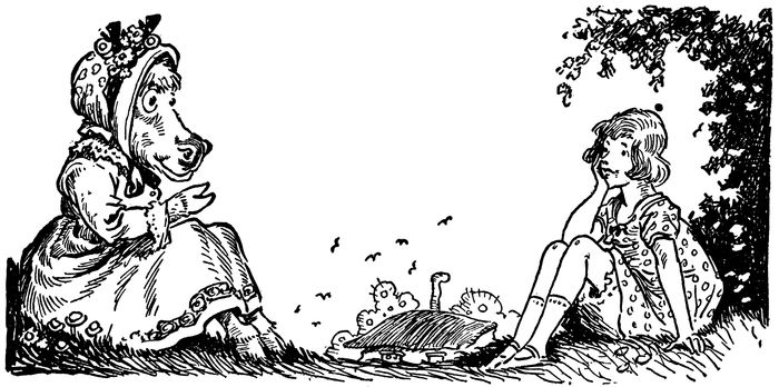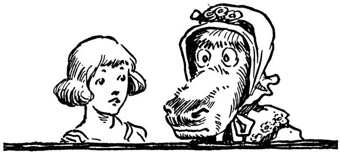 So Gran’ma waited until old Jingles had stopped rolling, then she rushed at him, and, catching his long nose in her hands, she gave it a tweak.