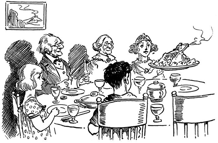 Janey helped Gran’ma set the table and Gran’pa built the kitchen fire. Then Gran’pa went to the smoke-house and brought in a large ham.