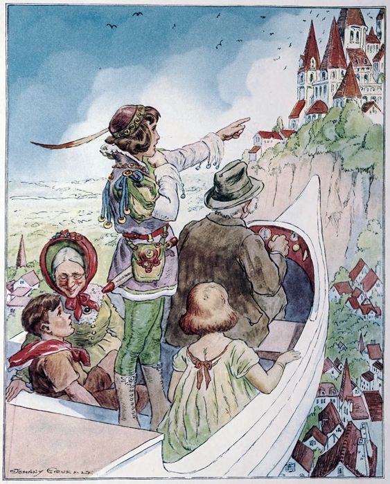 Then when she had kissed them all good-bye again Gran’pa turned the little knob marked “Start” and the new Flying Boat rose slowly from the roof of the Castle and sailed away.