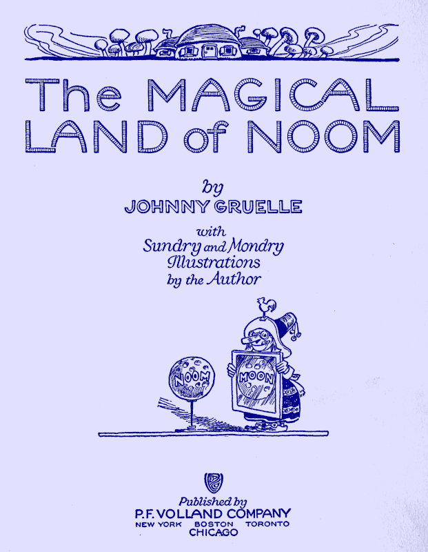 The Project Gutenberg EBook of The Magical Land of Noom, by Johnny Gruelle This eBook is for the use of anyone anywhere in the United States and most other parts of the world at no cost and with almost no restrictions whatsoever. You may copy it, give it away or re-use it under the terms of the Project Gutenberg License included with this eBook or online at www.gutenberg.org. If you are not located in the United States, you'll have to check the laws of the country where you are located before using this ebook. Title: The Magical Land of Noom Author: Johnny Gruelle Release Date: June 20, 2020 [EBook #62440] Language: English Character set encoding: UTF-8 *** START OF THIS PROJECT GUTENBERG EBOOK THE MAGICAL LAND OF NOOM *** Produced by Richard Tonsing, Mary Glenn Krause, Charlene Taylor, and the Online Distributed Proofreading Team at https://www.pgdp.net (This file was produced from images generously made available by the Internet Archive)