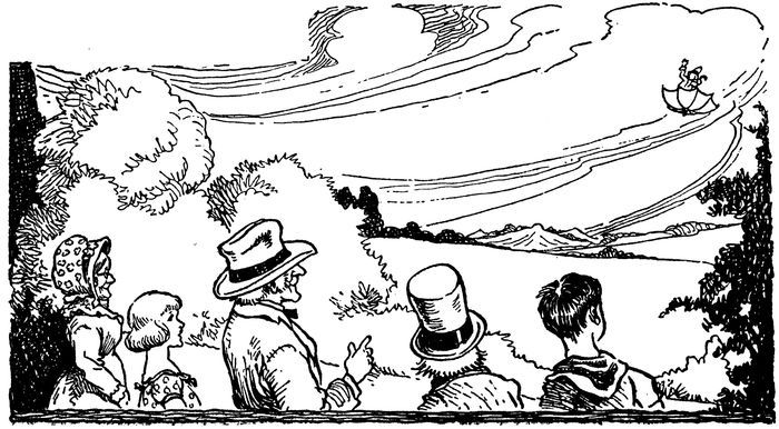 Sure enough, so far below that they looked like tiny specks of dust, the children could see their grandparents and many of the neighbors watching them as they sailed.