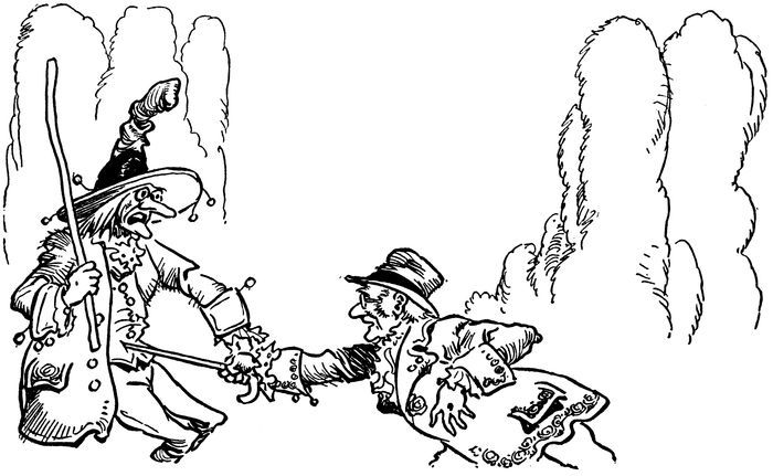| Gran’pa struck them right and left with his cane, but was finally knocked down | 50 |