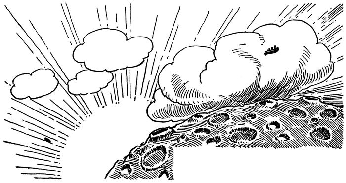 “Oh! I know what it is now!” Janey cried, presently. “A thunder storm has just passed between us and the Earth and the sun is shining on the Clouds. Look! See the lightning?”