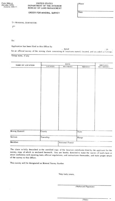 Mineral surveys are made to mark the legal boundaries of mineral deposits or ore-bearing formations on the public domain where the boundaries are determined by lines other than the normal subdivision of the public lands. These surveys include the usual surveying technical procedures and the examination and documentation of various reports and certificates necessary to substantiate legal procedures.
