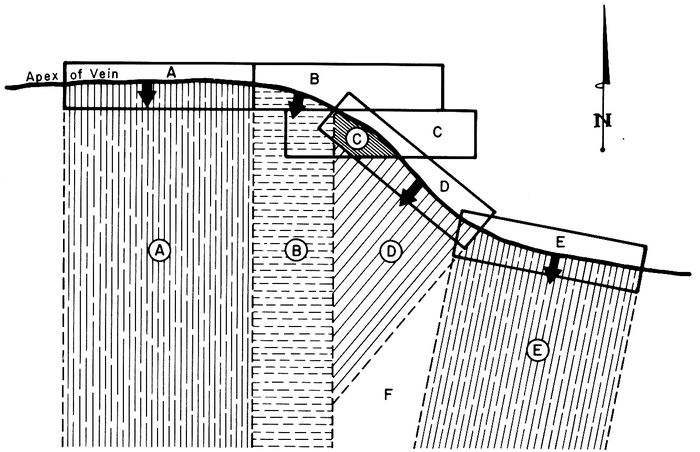 LODE LINE: presumed course of the vein or lode at the surface.
