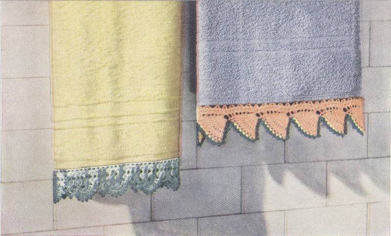 EDGE: * R, 6 d, 5 p sep by 2 d, 6 d, cl r. R, 6 d, join to last p of last r, 2 d, 4 p sep by 2 d, 6 d, cl r. Repeat from * once, tie and cut.