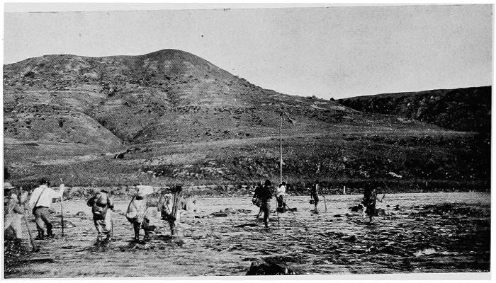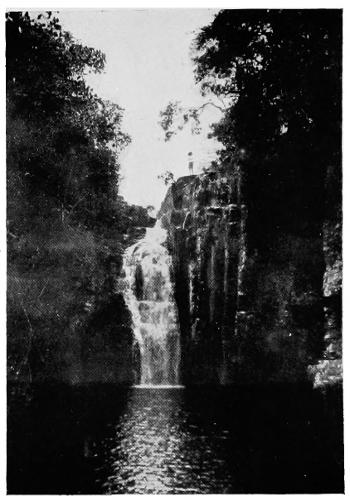 From Waratuk to Tukeit was two hours’ paddling. The shining lazy river, lying half asleep between its sentinel hills, seemed already to have forgotten the wild leap over Kaietuk. But from our boat we caught several glimpses of the Kaietuk cliff, which bars the end of the gorge, and we could just see that corner of the fall itself which is nearest the left bank.