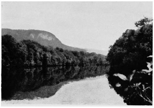A very pleasant way of accomplishing the journey to Wismar is to travel as a guest of the Company in one of its comfortable motor-boats, starting from Georgetown at about tea-time and following the silvery pathway of the river, aglow in the setting sun; to anchor in the starlight and sleep in the grateful coolness and velvet silence of the river night; to get under way again in the dawn, and to reach the settlement at Akyma before the full heat of the day. Especially is this delightful when such a journey is but the first stage on towards all the glories of mountain and river which lie awaiting those who venture to explore the wonders of an unknown land.
