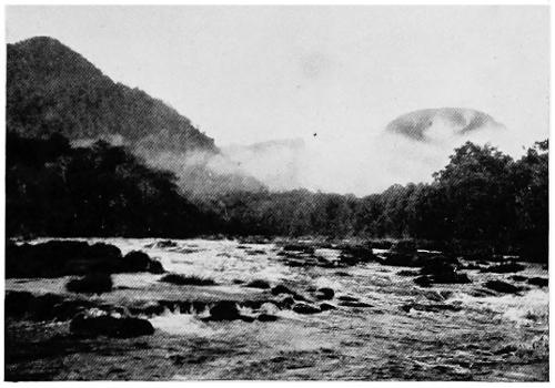 It is a tantalizing river. Twelve miles wide at its mouth; two miles wide at Bartika, where the commingled Cuyuni and Mazaruni join it; and still fully the same width at Rockstone, where the Demerara-Essequebo Railway strikes it—nevertheless, its innumerable cataracts and rapids make it a snare and an illusion to the navigator. In fact, the raison d’être of the Demerara-Essequebo Railway is to short-circuit the extremely dangerous series of cataracts between Rockstone and Bartika, in which many lives have been lost. By crossing the low divide between the two rivers, the traveller reaches the Essequebo at Rockstone, well above these dangers. He then has a navigable stretch of sixty miles before him to Tumutumari.