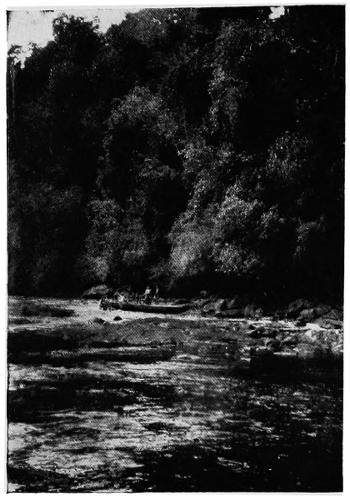 Once the stores are all safely packed in the tent-boat, the paddlers established on their thwarts, and after the last wild rush up the bank to secure some precious, almost forgotten article, such as kettle or saucepan, how delightful it is to feel that at length one is off into the very heart of the wilderness! The soothing splash of the paddles is inexpressibly welcome after the din of launch travel, and we surrender ourselves to the enjoyment of the big restful silence and unchanging peace of the dreamy forest-wrapped river, and to delightful anticipation of wonders to come.