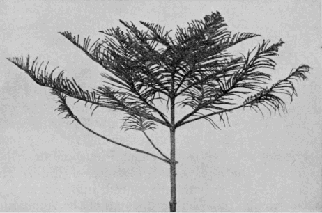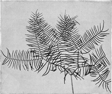 The Gymnosperms are geologically very much older than the Angiosperms. Members of this class played a prominent part in the vegetation of the Coal age and it is certain that they existed in the still older Devonian period. The only other group to which reference is made in later chapters is that of the Ferns, one of the sub-divisions of a large class known as the Vascular Cryptogams or Pteridophyta. These plants, like the Gymnosperms, are represented in the oldest floras of which recognisable remains have been preserved. The main groups of the vegetable kingdom, founded on existing plants, are distinguished by well-defined differences; they are comparable with separate twigs of a tree springing from larger branches and these again uniting below in a common trunk. The vegetation of to-day represents only the terminal portions of the upper branches. As we descend the geological series, records of extinct types are found which enable « 19 » us either to trace the separate branches to a common origin or to recognise a convergence towards a common stock. Were a botanist to find himself in a forest of the Coal age he would experience great difficulty in assigning some of the plants to their systematic position: characters now regarded as distinguishing features of distinct groups would be met with in combination in a single individual. It is by the discovery of such generalised types, which serve as finger-posts pointing the way to lines of evolution, that the student of pre-existing plants has been able to throw light on the relative antiquity of existing forms, and to trace towards a common ancestry plants which now show but little indication of consanguinity.