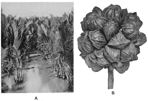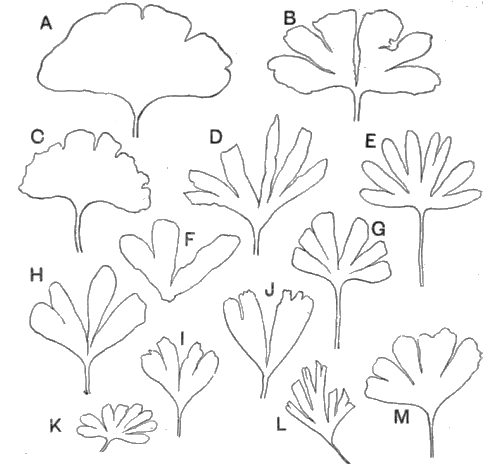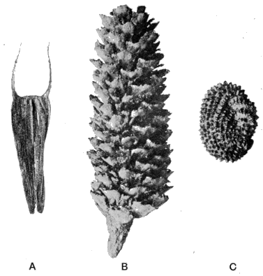 The members of the Vegetable Kingdom placed next to the Flowering Plants are the Gymnosperms or naked-seeded (γυμνὁς, naked) plants, including (i) the Conifers, e.g. pines, firs, larches, the yew, etc., « 18 » (ii) a small group of plants known as the Cycads, whose existing members, now almost confined to a few tropical regions, are the descendants of a vigorous race represented by many species in the floras of the Mesozoic epoch. A third sub-division of the Gymnosperms, the Ginkgoales, is represented by a single survivor, which is described in a later chapter as one of the most remarkable links with the past in the plant kingdom.