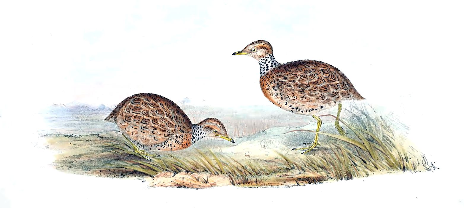 This very beautiful species of Hemipode is an inhabitant of the Houtman’s Abrolhos, a group of islands so called lying off the western coast of Australia, and is tolerably abundant on two of them named East and West Wallaby Islands, where it is principally met with among the limestone crags.