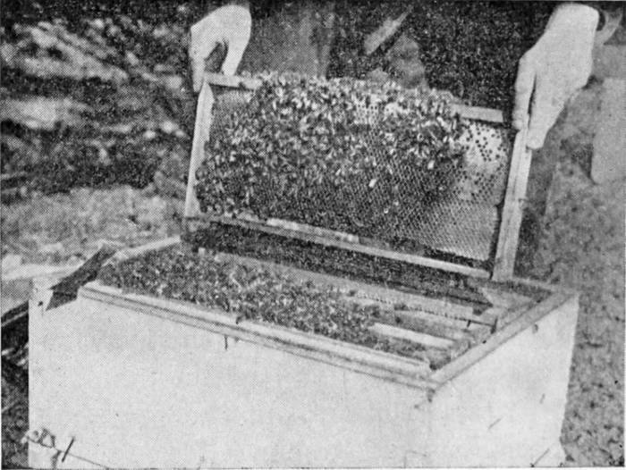 In our country the straw hive has never been used. The hives now in use have frames on which combs may be built and filled with honey and then drawn out, leaving the lower combs for the bees' own use. There is a process by which the honey can be drawn from the combs without breaking them in any way, so that they may be filled again by the bees. As in this case they do not have to[340] make new combs the active insects can soon fill the old ones again.