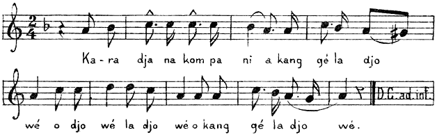 Men vervolgde den vijand naar den berg Kahili, alwaar hij door de onzen, geleid door den orangkaja van Hoelong, volkomen verrast werd en een voornaam hoofd, de kapitein laoet Kaitjili Shaidi met vrouw en zoon in onze handen viel. Een onzer gidsen een moorschen priester „vatte hem zoo als hy den dans meende te ontspringen, zelf by de krop, dog alzoo Schaydi een gezet en sterk man was, had de eene schelm den andere byna gemold zoo niet een van onze soldaaten hem een houw in ’t linker been toegebragt had.” Twintig Makassaren lieten bij dezen overval het leven, terwijl er nog eenigen in de vlucht „gesalveerd” werden en 44 vaandels in onze handen vielen. [26]Deze overwinningen maakten zulken indruk op de Kellangers, dat zij zich onderwierpen en het hoofd van Madjira’s halve broeder Kimelaha Dagga, in een korfje, den opperbevelhebber aanboden.