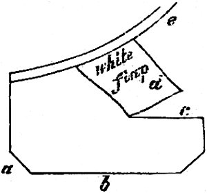 Second row—knit 1, thread over, take 2 together. Repeat; 6 more plain rows, and then any fancy stitch. When 3 inches are done knit a row, decreasing at the beginning and end of the row. Pearl the next, decreasing in the same way. Do 5 more rows in this manner, and cast off. Now sew the crown{63} and head parts together, gathering the fulness at the top, and not at the sides.