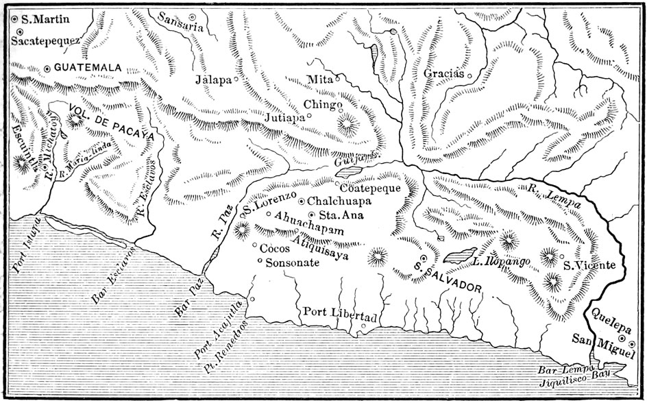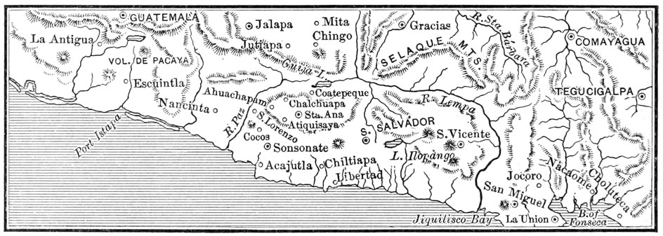 | Malespin's Acts—Lindo's Coup d'Etat and Deposal—Jefe Guzman—Revolt at Santa Ana—President Aguilar—The Bishop Expelled—Viteri's Alliance with Malespin and Honduran Oligarchs—President Vasconcelos—British Hostilities—Salvador's Relations with Foreign Powers—San Martin's Administration—Destruction of San Salvador—President Campo—Campaign against Walker in Nicaragua—Establishment of the Republic—Santin's Overthrow—Presidency of Gerardo Barrios—War of Salvador and Honduras against Guatemala and Nicaragua—The Latter Victorious—Barrios' Flight—Restoration of Peace—Dueñas as President—Barrios' Subsequent Return—His Capture and Surrender by Nicaragua—His Execution in San Salvador | 285 |