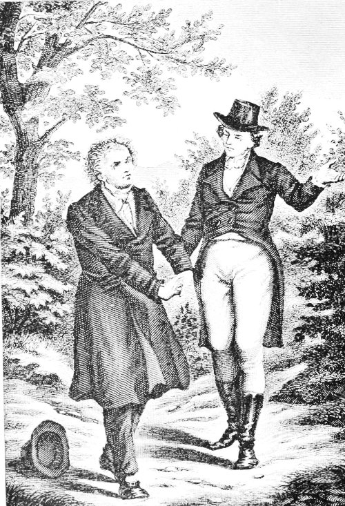 “Ries,”[30] calls Beethoven after a little. A young man soon appears, and salutes the master reverently and tenderly. He is the son of Beethoven’s old friend, chapelmaster Ries of Bonn. The great master, who usually was extremely reluctant to give lessons, accepted the young man as a pupil as a mark of gratitude to his father. Chapelmaster Ries had been very kind to Beethoven’s mother in the last years of her life, and Beethoven repaid his kindness by this favor to his son.