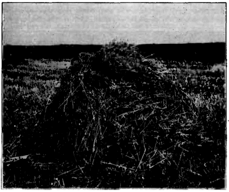 With the possible exception of alfalfa on fertile soils, no other leguminous crop will furnish as much nutritious pasturage from early spring until late fall as sweet clover when it is properly handled. Live stock which have never been fed sweet clover may refuse to eat it at first, but this distaste is easily overcome by turning them on the pasture in the spring, as soon as the plants start growth (fig. 1). Many cases are on record where stock have preferred sweet clover to other forage plants. The fact that it may be pastured earlier in the spring than many forage plants and that it thrives throughout the hot summer months makes it a valuable addition to the pastures on many farms. Sweet clover is an especially valuable forage plant for poor soils where other crops make but little growth, and it is upon such soils that thousands of acres of this crop are furnishing annually abundant pasturage for all kinds of live stock. In many portions of the Middle West, where the conditions are similar to those of southeastern Kansas, it bids fair to solve the serious pasturage problems. Native pastures which will no longer provide more than a scant living for a mature steer on 4 or 5 acres, when properly seeded to sweet clover will produce sufficient « 5 » forage to carry at least one animal to the acre throughout the season. In addition to this, a crop of hay or a seed crop may be harvested from a portion of the land when it is so fenced that the stock may be confined to certain parts of the field at specific times. Land which is too rough or too depleted for cultivation, or permanent pastures which have become thin and weedy, may be improved greatly by drilling in, after disking, a few pounds of sweet-clover seed per acre. Not only will the sweet clover add considerably to the quality and quantity of the pasturage but the growth of the grasses will be improved by the addition of large quantities of humus and nitrogen to the soil.
