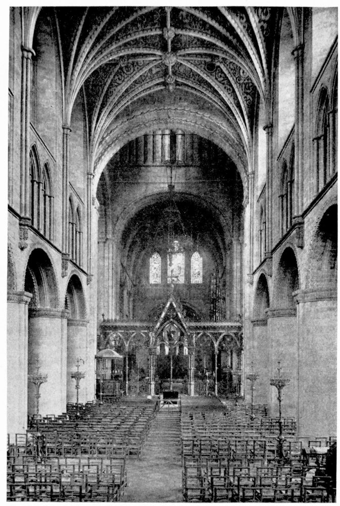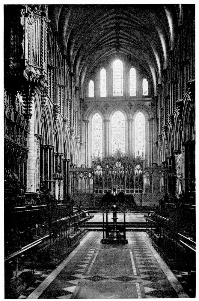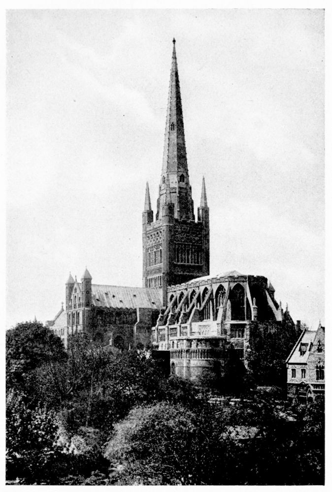 “In Italy the bones of a saint or martyr were almost invariably deposited either beneath or immediately in front of the altar. But in the Gothic nations this original notion of the burial-place of the Saints became obscured, in the increasing desire to give them a more honourable place. According to the precise system of orientation adopted by the German and Celtic nations, the eastern portion of the church was in those countries regarded as pre-eminently sacred. Thither the high altar was generally moved, and to it the eyes of the congregation were specially directed. And in the eagerness to give a higher and holier even than the highest and holiest place to any great saint, on whom popular devotion was fastened, there sprang up in most of the larger churches during the Thirteenth Century a fashion of throwing out a still further eastern end, in which the shrine or altar of the saint might be erected,—and to which, therefore, not merely the gaze of the whole congregation, but of the officiating priest himself, even as he stood before the high altar, might be constantly turned. Thus, according to{x} Fuller’s quaint remark, the superstitious reverence for the dead reached its highest pitch, ‘the porch saying to the churchyard, the church to the porch, the chancel to the church, the east end to all—“Stand further off, I am holier than thou.”’ This notion happened to coincide in point of time with the burst of devotion towards the Virgin Mary, which took place under the Pontificate of Innocent III., during the first years of the Thirteenth Century; and, therefore, in all cases where there was no special local saint, this eastern end was dedicated to Our Lady and the chapel thus formed was called The Lady-Chapel. Such was the case in the Cathedrals of Salisbury, Norwich, Hereford, Wells, Gloucester and Chester. But when the popular feeling of any city or neighbourhood had been directed to some indigenous object of devotion, this at once took the highest place, and the Lady-Chapel, if any there were, was thrust down to a less honourable position. Of this arrangement, the most notable instances in England are, or were (for in many cases the very sites have perished), the shrines of St. Alban in Hertfordshire, St. Edmund at Bury, St. Edward in Westminster Abbey, St. Cuthbert at Durham, and St. Etheldreda at Ely.”—(A. P. S.)