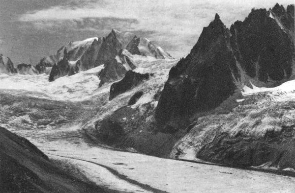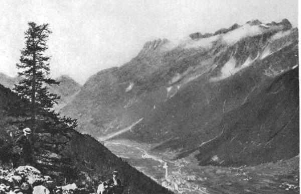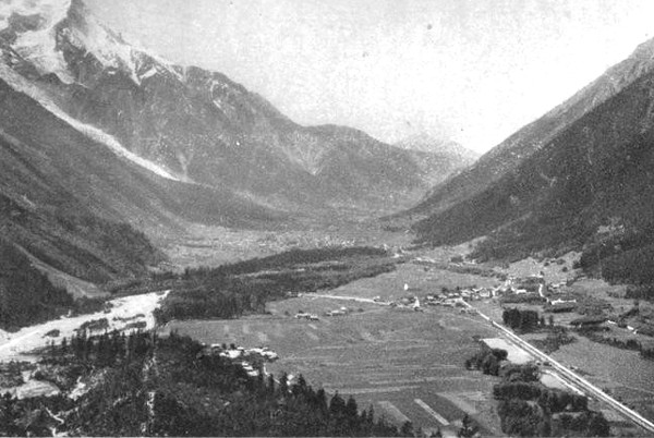 La vallée de Chamonix! Que de souvenirs s'attachent à cet étroit couloir serré entre le Mont-Blanc et le Brévent, qui s'étend de l'est à l'ouest sur 23 kilomètres, du col de la Voza au col de Balme. Quelle fascination n'a-t-elle point exercée depuis l'époque lointaine où le Mont-Blanc s'appelait déjà dans les anciens textes «rupes quae vocatur Albae».
