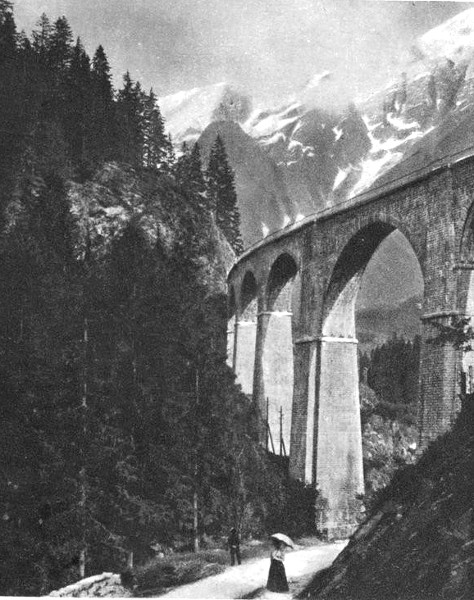 Du Fayet-Saint-Gervais à Chamonix la différence de niveau est de près de 500 mètres; l'Arve la franchit avec impétuosité dans sa descente irrésistible vers la plaine. Le chemin de fer électrique en remonte le cours, tantôt sous la pierre par des tunnels, tantôt au-dessus du torrent, par d'impressionnants viaducs.