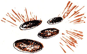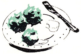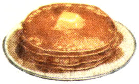 Make Pancake batter (p. 2). Thin with a little milk. Then spoon out a tablespoon at a time to fill your griddle with tiny mouthfuls of “silver dollar” pancakes. Serve several on each plate.