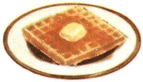 Lay short strips of bacon over grids of heated waffle iron. Close and bake about 1 min. Make Waffle batter (p. 2)—except omit shortening. Spoon batter over bacon. Bake.