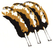 Make ball of dough as above. Dust hands generously with Bisquick. Slip ball from stick. Roll between palms into a 4 or 5″ strip. Wind strip spirally around end of stick, pinching tightly at ends to secure. Bake as above (about 5 min.). Slip off stick. Fill center with strip of cheese or cooked meat or spoon in jelly, jam, or honey. Eat piping hot.