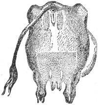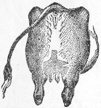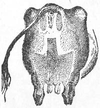 The discovery which I have made of the value of the escutcheon is designated by the contrary direction of the hair, and which had escaped the attention of every one, even those most interested in gaining the knowledge of it. It is necessary also to avow the effect produced by the change of direction of the hair is not glaring on the animal. It is merely a difference of luster, and the gloss on the surface of the escutcheon and the part of the skin surrounding it. The hair of the escutcheon is finer, shorter, more furry, and more silky. Its appearance, at the first glance, makes one think this part of the animal has been shaved. Compared with the ordinary hair, the skin of the udder appears to be more designed to be quicker seen on the part where appears the escutcheon.