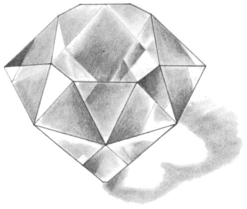 The diagram shows a brilliant-cut diamond with angles and facets arranged to give the stone maximum internal reflection as well as to make use of its strong dispersive ability. Certain of the light beams passing into a brilliant-cut diamond produce colorless brilliance by being reflected back out of the stone 13 through the table by which they entered. Other light beams, emerging through inclined facets, are split up by dispersion into the rainbow, or fire, effect so prized in diamonds. A stone that has been cut too wide for its depth, with incorrect facet angles, will look large for its weight but its brilliance and fire will have been drastically reduced.