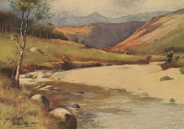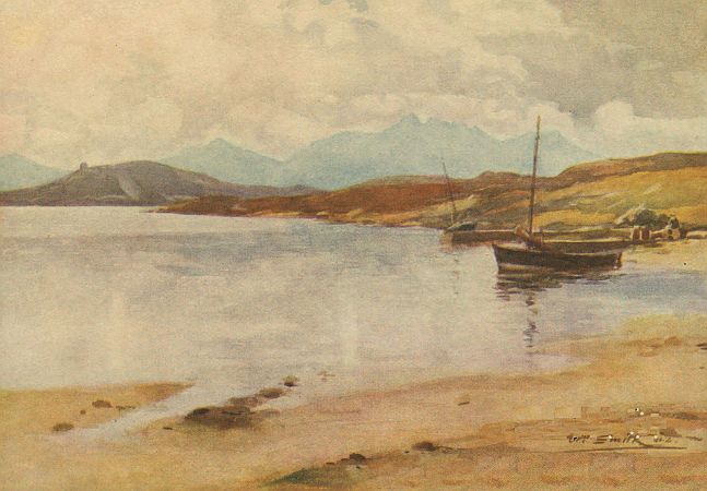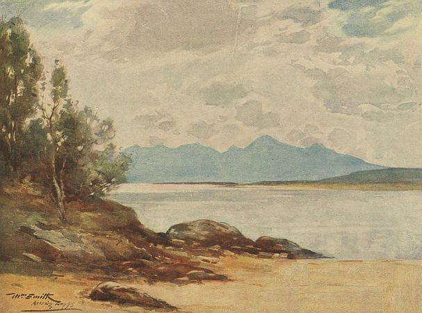 Bute, of course, sinks to a mere Isle of Wight when compared with the grandeurs and loveliness of Arran, lying to the south. This island indeed has scenery which some declare unsurpassed in Britain, notably on the flanks of its Goatfell summit. Yet while Glen Rosa, Glen Sannox, and Loch Ranza have often been famed by painters, it seems the case that poets, novelists, and other artists in words make not much copy out of the charms of Arran. One feels inclined to suspect authors [9]of Sybarite tastes, since a weak point of Arran as tourist ground is, or has been, a want of accommodation under the shadow of a ducal house that looked askance on building. The only two townlets on the island, Brodick and Lamlash, count their population in hundreds; and their hotels are hard put to it to accommodate the strangers who have often had to be content with a shake-down in the room used as an English chapel, or with shelter in one of the few bathing machines; I have heard of a whole boatful of excursionists lodged in a hay-field. Holiday quarters in this paradise are engaged for a year ahead, and Piccadilly prices may have to be paid as rent of a hovel. Thus hitherto Arran has been preserved as a haunt of real nature-lovers, and within two or three hours’ sail of Glasgow one could find an almost pristine solitude of purple heather and solemn crags all unprofaned by watering-place gaiety or luxury. The sourest Radical of sound taste might here exclaim, “God bless the Duke!”—not of Argyll—yet one wonders what a late duke’s creditors thought of such a demesne being kept clear from vulgar considerations of profit.