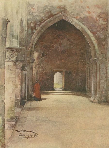 Beside the Cathedral stand the ruins of two palaces: the Bishop’s, in which King Haco died, and the later Earl’s, built by Patrick Stewart, tyrant of the Islands, as was his father before him, a left-handed son of James V., set up in life with this misused dominion. Patrick’s oppressions were so scandalous that he came to execution, as did his son Robert Stewart, for rebellion, so, like the Dukedom of Orkney conferred by Mary on Bothwell, who never got the length of admission into Kirkwall, the Stewarts’ Earldom passed away, belying its boastful motto, Sic fuit, est, et erit. These offshoots of royalty seem unlucky in their intromissions with Latin, for one of the charges against them was Earl Robert having described himself as [207]“Filius Jacobi Quinti Rex Scotorum,” a slip in grammar that came to be judged treasonable, as indeed did Wolsey’s good Latinity, “Ego et rex meus.”