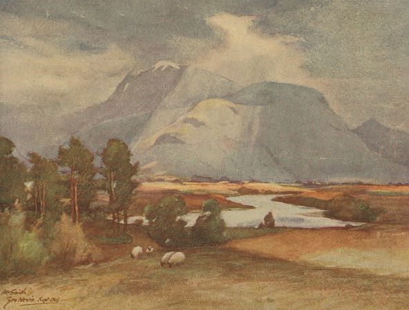 In Bonnie Scotland was promised a further volume that should be devoted to the sterner and wilder aspects of Caledonia. That book dealt with the main body of Highlands and Lowlands, more familiar to the gentle tourist for whose patronage it was a candidate. This one, whose title might have been qualified as West Highlands, deals with the less visited side that is still Highland indeed, both in ruder natural features and in a life holding out longer against the trimming and taming of Sassenach intromissions. The author, as before, has tried to weave a pattern of entertaining stripes and checks upon a groundwork of information, all making a darker-hued tartan than is worn in the centre of Bonnie Scotland. Another metaphor would put it that he has prepared a brisk, perhaps frothy, but, it is hoped, not unpalatable, brew of “heather ale,” which contains in solution more solid ingredients than may be manifest to every reader.